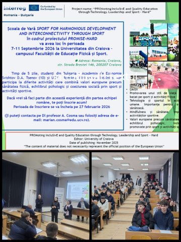 Sport pentru dezvoltare armonioasă, interconectivitate prin sport (Scoală de vară organizată de Universitatea de Craiova, Craiova, România)
